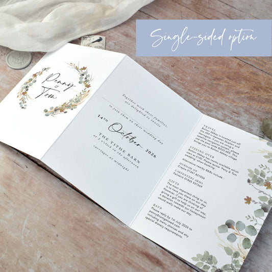 Autumn Willow Wreath 3 fold Concertina Wedding Invitation