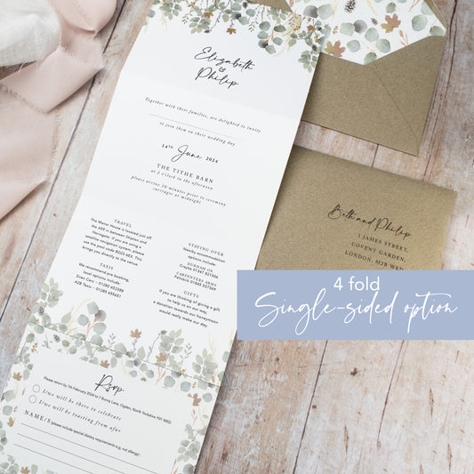 Autumn Willow 4 Fold Concertina Wedding Invitation