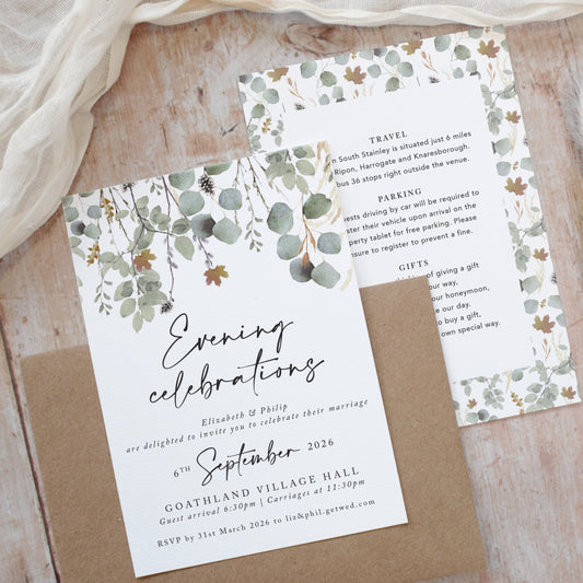 Autumn Willow Wreath Evening Wedding Invitations