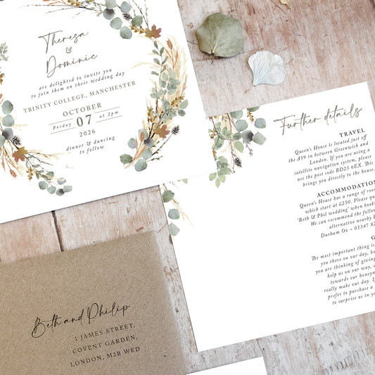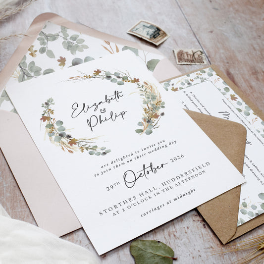 Autumn Willow Wreath Wedding Invitation