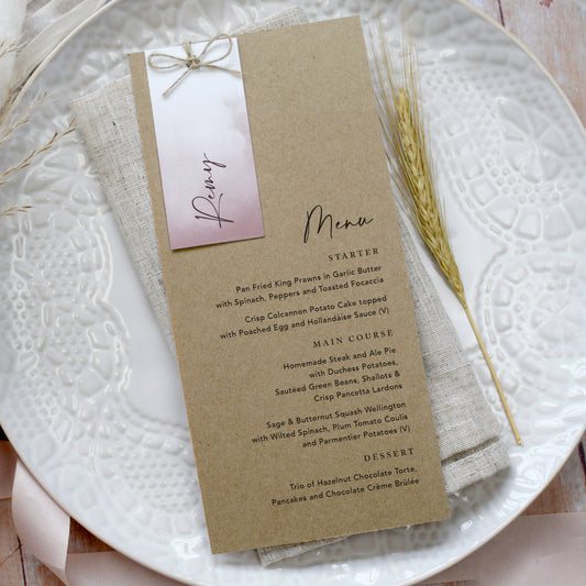 Dusky Pink Guest Tag Menu Cards