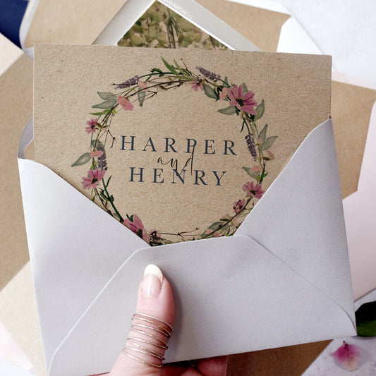 Whisper Wreath Kraft Evening Wedding Invitations