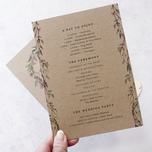 4 PAGE 'Whisper Kraft' Wedding Order of Service Booklet