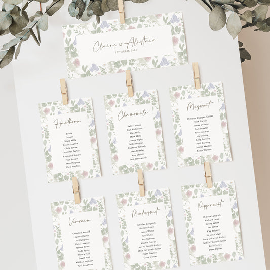 Wildflower Wedding Seating Plan Cards
