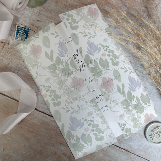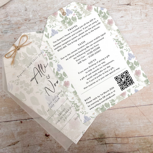Wildflower Vellum Tag Wedding Invitation