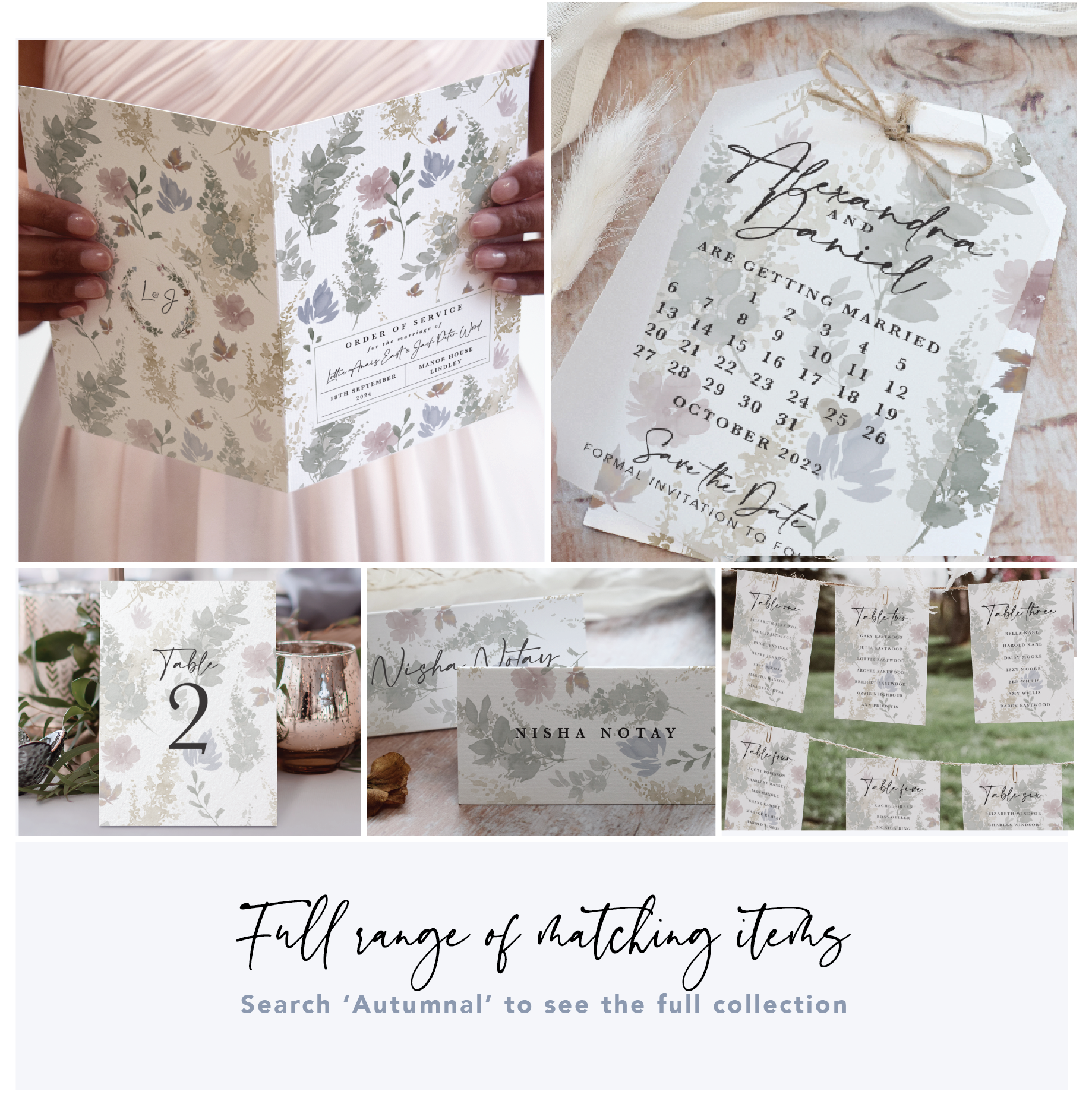 Double-sided Table Name Cards printed onto luxury 300gm textured FSC card stock. 5x7 (12.8cm x 17.8cm).