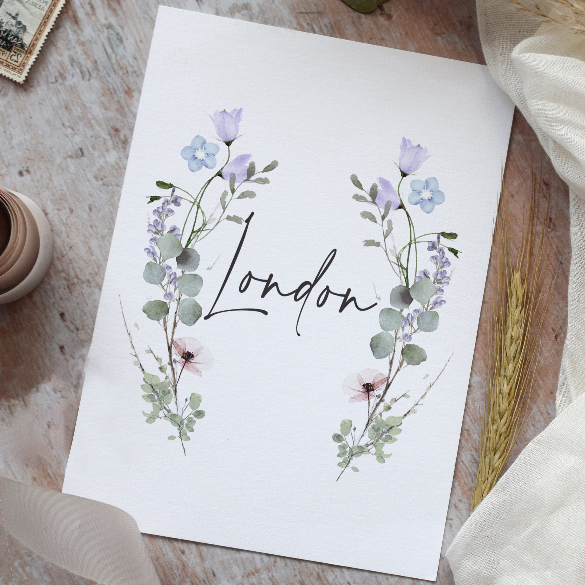 Double-sided Table Name Cards printed onto luxury 300gm textured FSC card stock. 5x7 (12.8cm x 17.8cm).