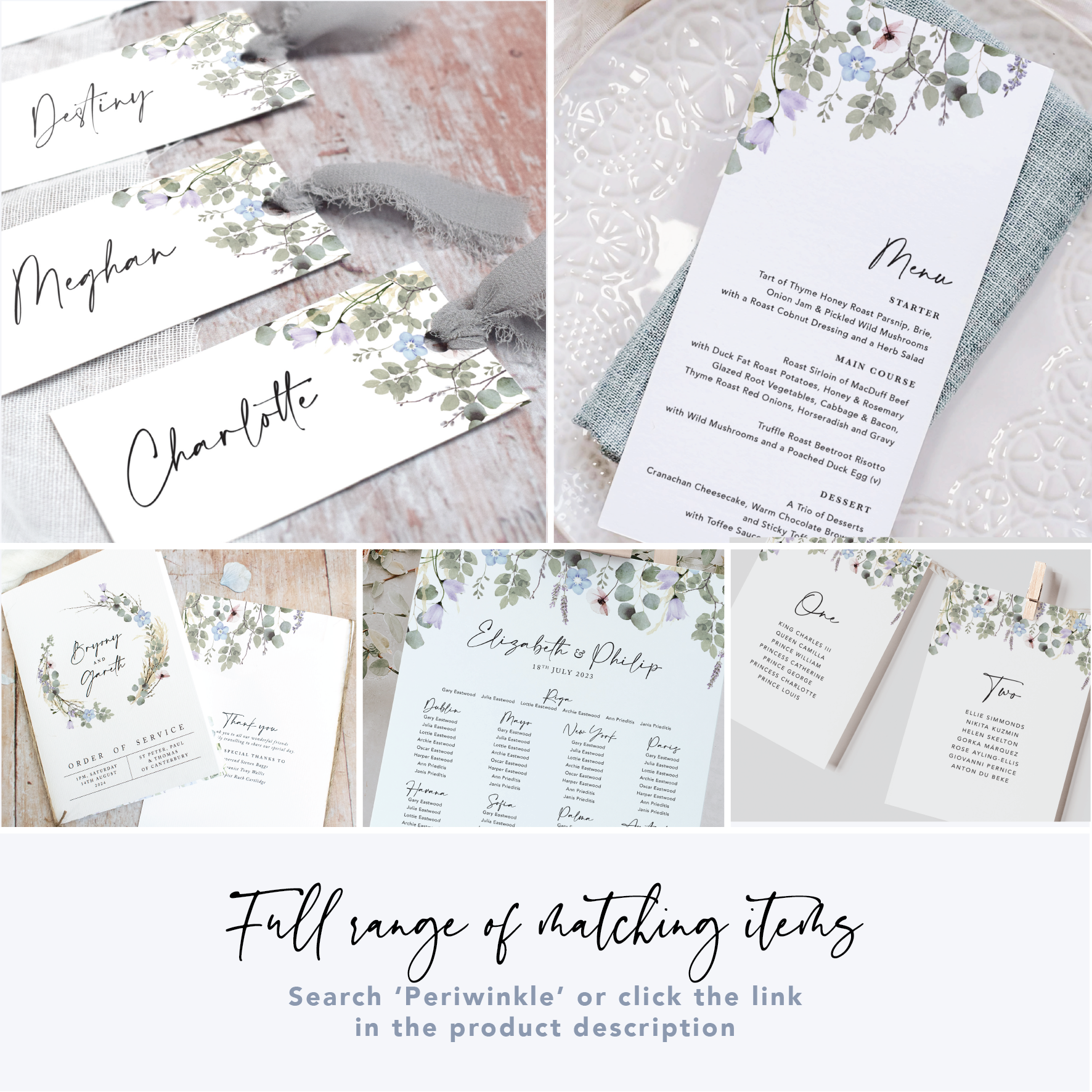 Double-sided Table Name Cards printed onto luxury 300gm textured FSC card stock. 5x7 (12.8cm x 17.8cm).
