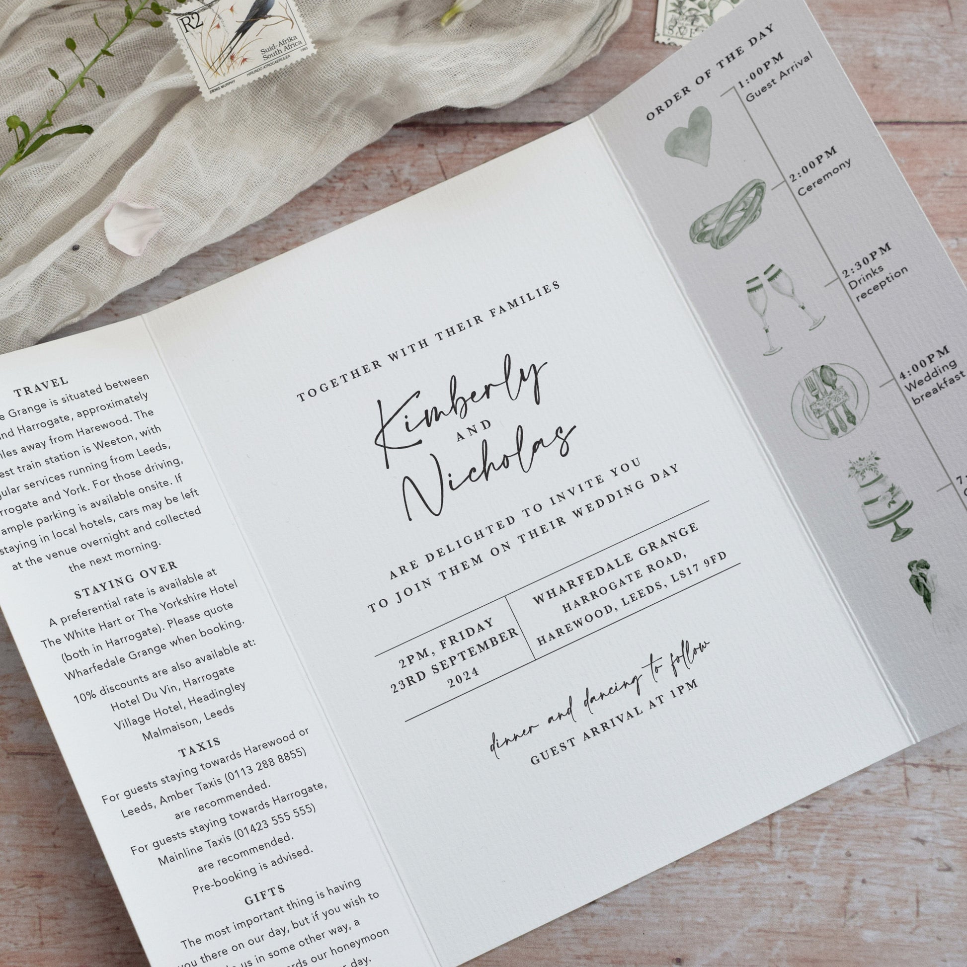 * Proofs of place cards, table names and greetings cards are not supplied