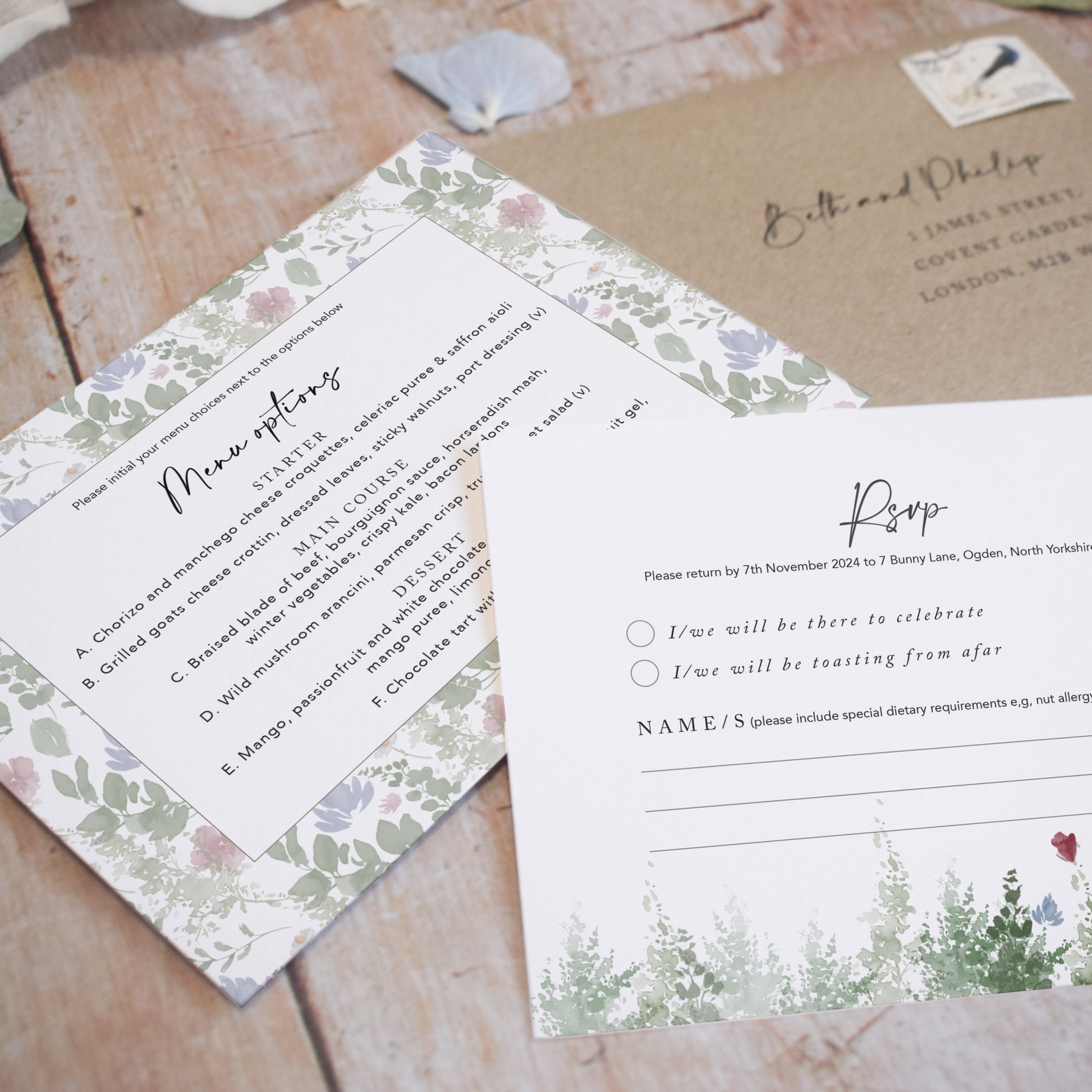 • Free Kraft or White invitation envelopes included (choice of colour upgrade)