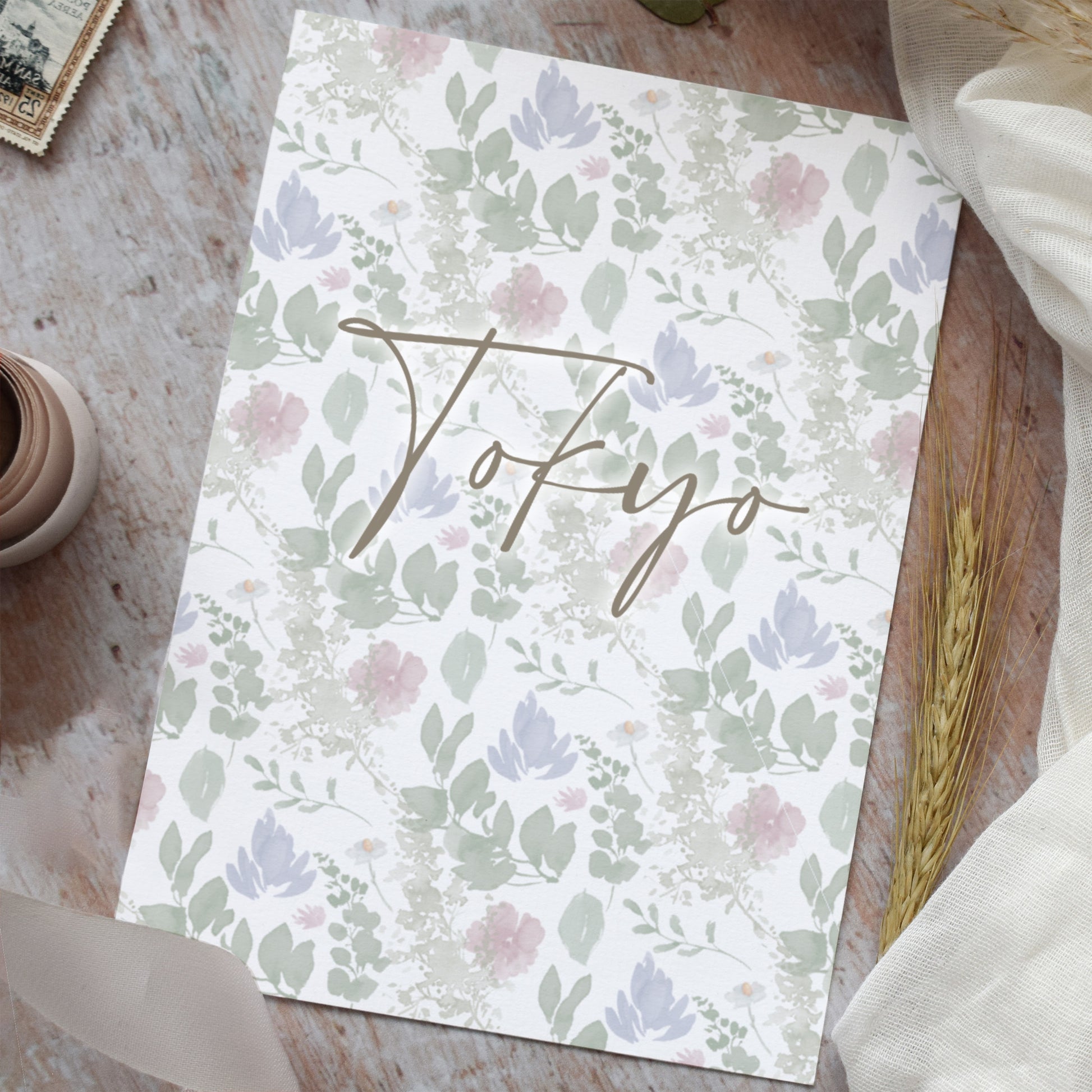 Double-sided Table Name Cards printed onto luxury 300gm textured FSC card stock. 5x7 (12.8cm x 17.8cm).