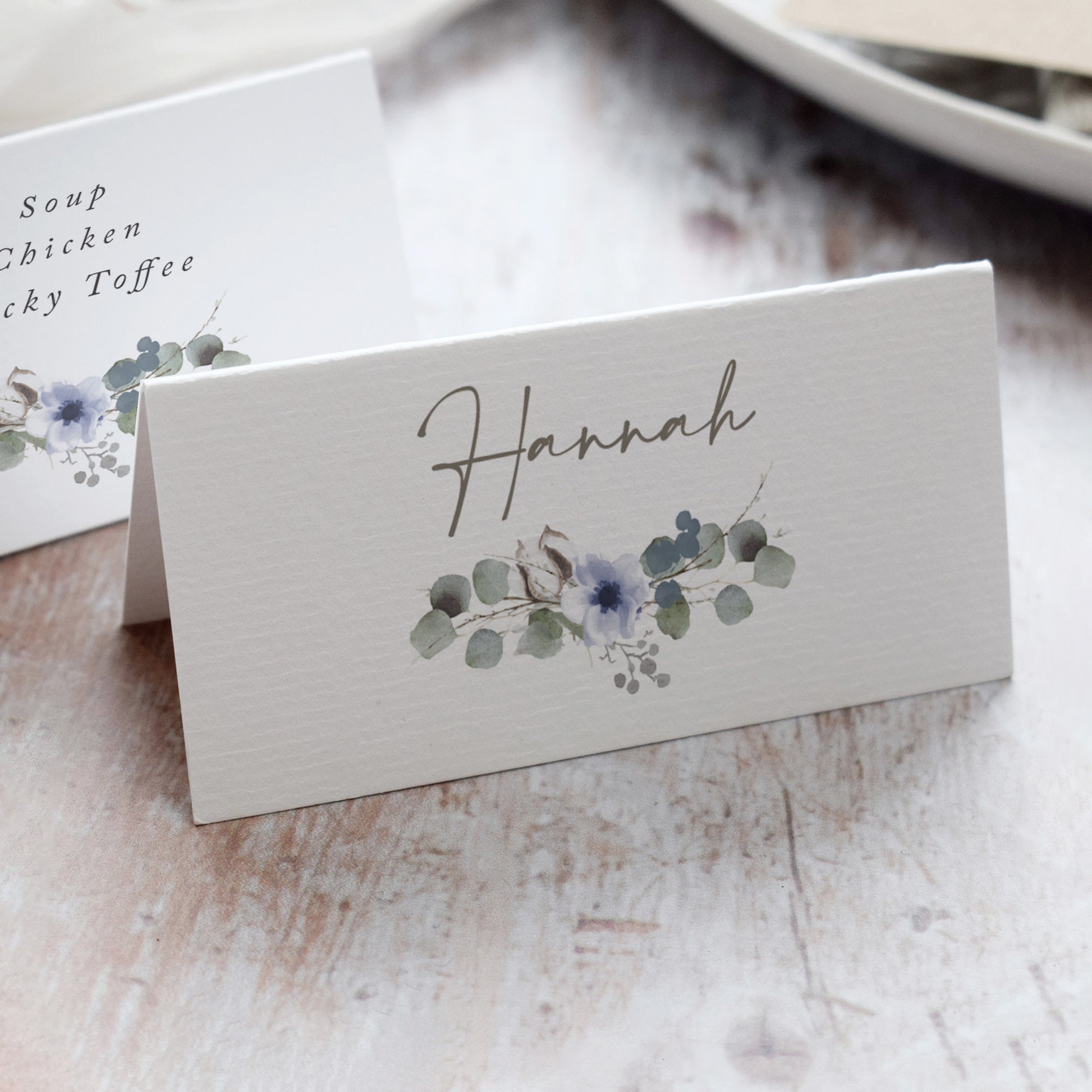Each place card measures 45x90mm when folded and is printed onto beautiful luxury Fresco Gesso textured 300gsm card stock.
