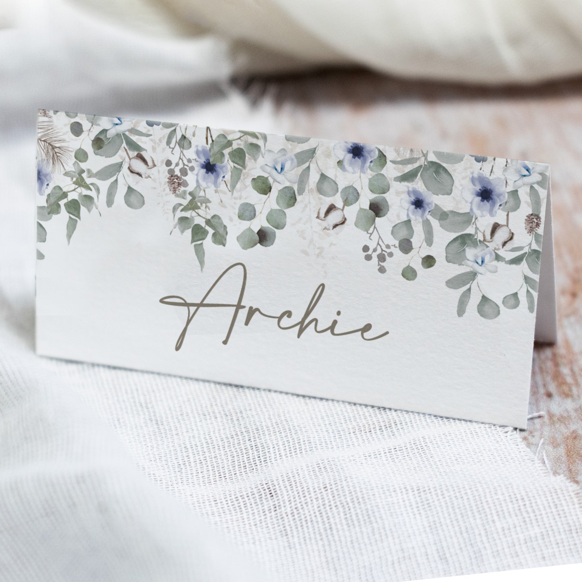 Each place card measures 45x90mm when folded and is printed onto beautiful luxury Fresco Gesso textured 300gsm card stock.